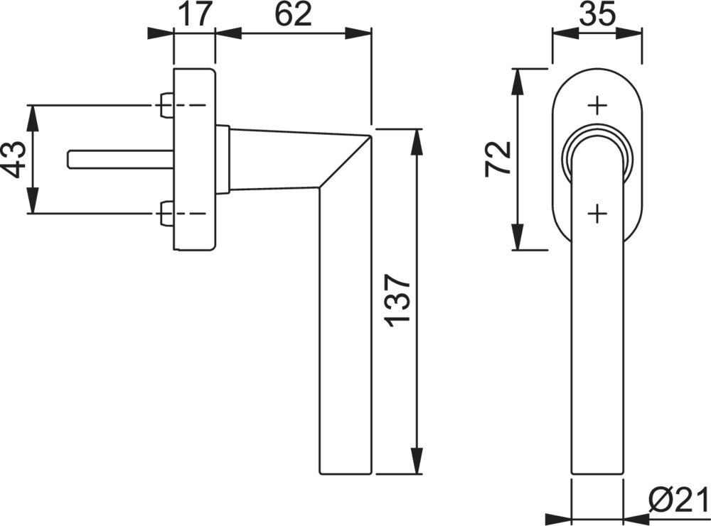Produktinformationen "HOPPE Fenstergriff Amsterdam 0400/UD9056, Standard, oval,7/20-30,F1"