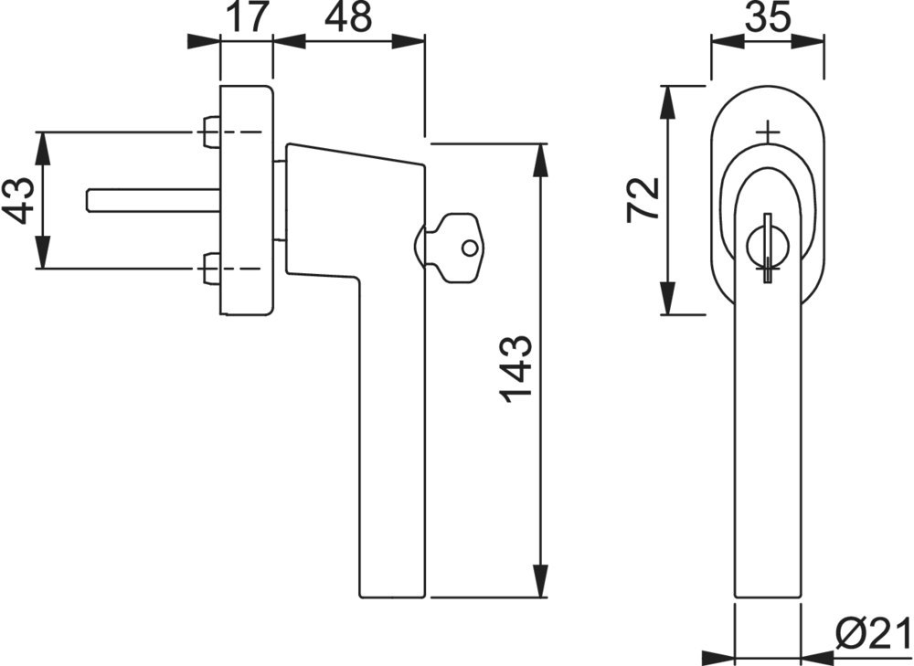 Produktinformationen "HOPPE Fenstergriff Amsterdam 0400S/UD9056, abschließbar, oval,7/20-30,TBT4,F1"