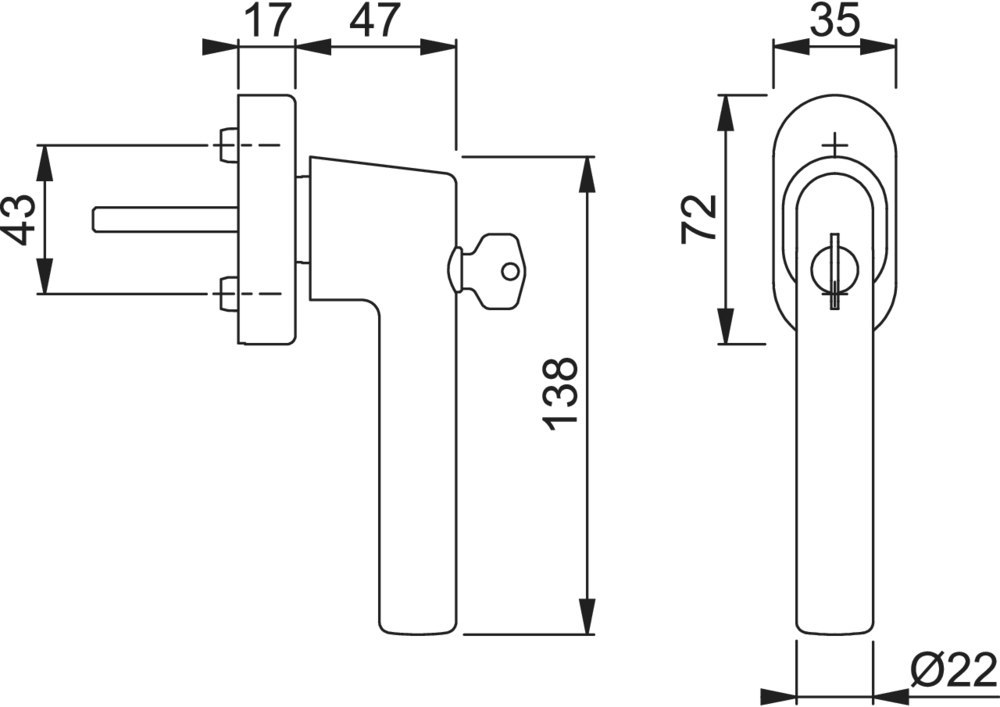 Produktinformationen "HOPPE Fenstergriff Amsterdam E0400S/UD9056, abschließbar, oval,7/20-30,TBT4,F69"