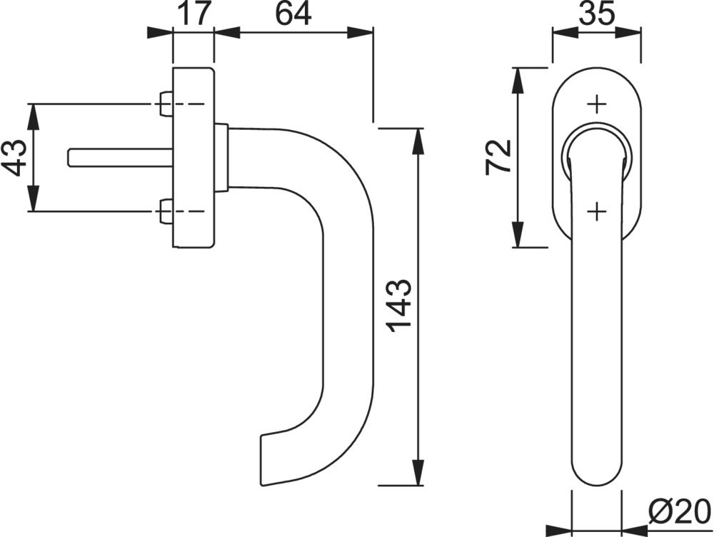 Produktinformationen "HOPPE Fenstergriff Paris 038/UD9056, Standard, oval,7/32-42,F1"