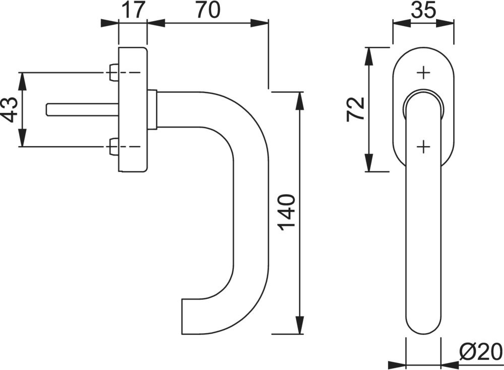 Produktinformationen "HOPPE Fenstergriff Paris E038/UD9056, Standard, oval,7/32-42,F69"