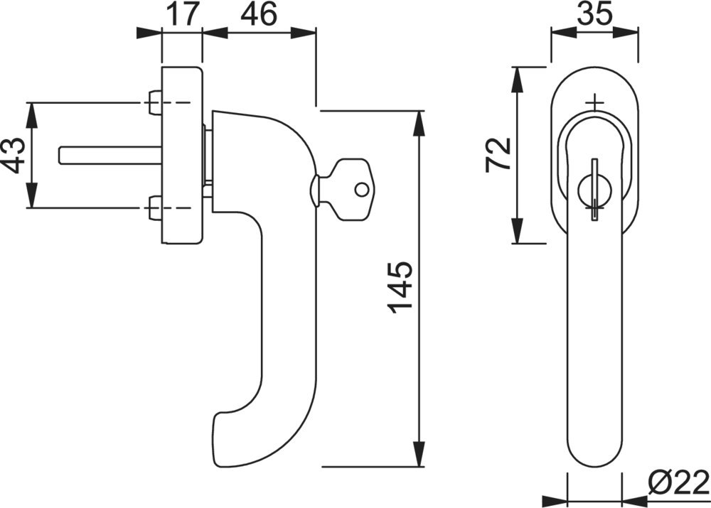 Produktinformationen "HOPPE Fenstergriff Paris E038S/UD9056, abschließbar, oval,7/32-42,F69"