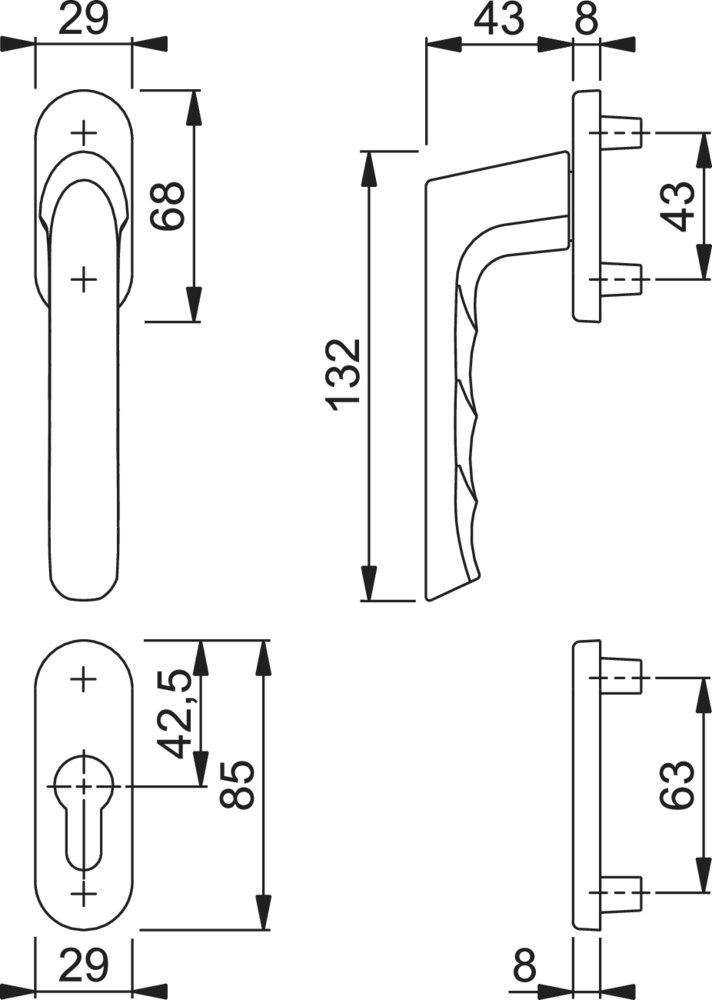 Produktinformationen "HOPPE Fenstertür-Halbgarnitur Brest 0739/66N/66NS, N 10, Profilzylinder gelocht"