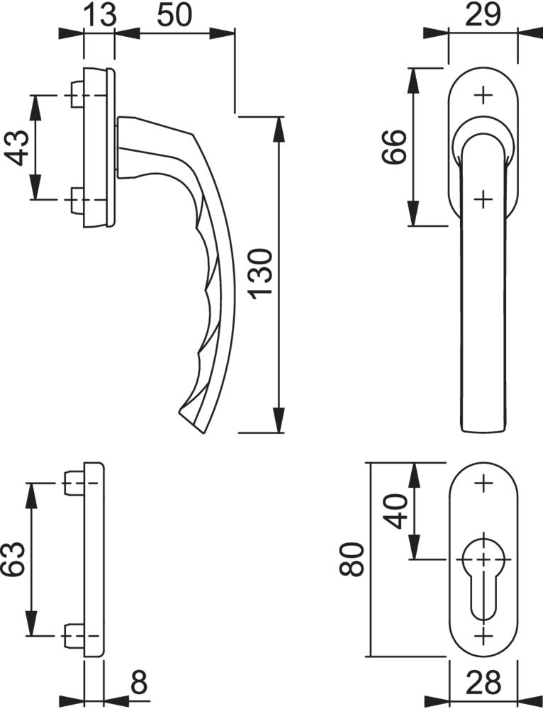 Produktinformationen "HOPPE Fenstertür-Halbgarnitur Liège 0540/U26/49PNS, N 10, Profilzylinder gelocht"