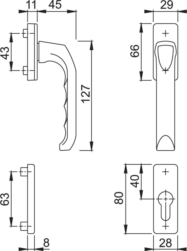 Halbgarnitur London 013/U34/51PNS; Ausführung: mit Rosetten,abschließbar; Material: Aluminium; Vierkant: 7 mm; Rastung: 90°; Befestigungsart: verdeckt verschraubt; Befestigungstechnik: mit Stütznocken; Lieferung: ohne Schrauben,mit Vierkantstift; Einsatzbereich: Fenstertür; Basis: Halbgarnitur; Farbe: braun; DIN-Richtung: DIN Links-Rechts; Modellnummer: 013/U34/51PNS; Nockendurchmesser: 10 mm; Sockelbreite: 29 mm; Sockelhöhe: 66 mm; Sockelstärke: 11 mm; Befestigungsabstand: 43 mm; Farbton: dunkelbraun seidenglänzend; Lochung: Profilzylinder gelocht; Sockelausführung: mit eckiger Rosette; Griffform: gerade; Breite Schlüsselrosette innen: 28 mm; Länge Schlüsselrosette innen: 80 mm; Grifflänge innen: 127 mm; Griffhöhe innen: 45 mm; Außengriff/Innengriff: innen Standard; Funktion: Standard; Fensterwerkstoff: Aluminium,Holz,Kunststoff; Aufdruck: mit Logo