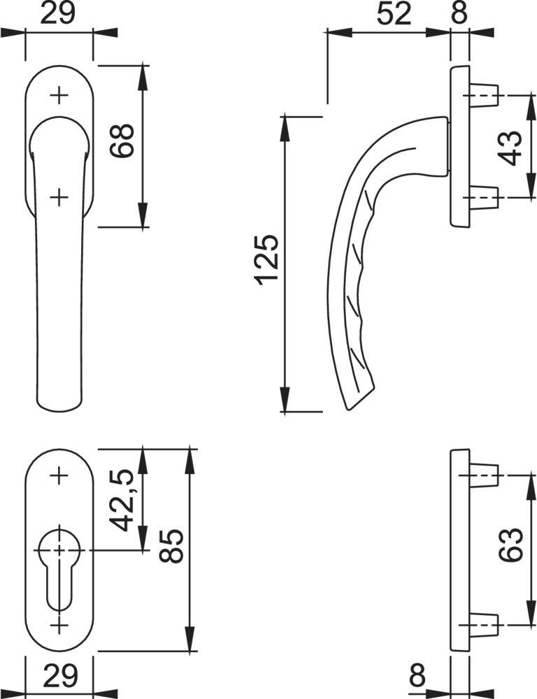 | Länge Schlüsselrosette außen: | 85.00 MMT |