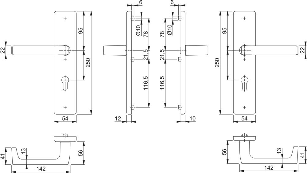 Sicherheits-Drückergarnitur Detroit FS-1644F/2221/2210; Produkttyp: Sicherheits-Drückergarnitur; Produkttyp (Hersteller): Sicherheits-Drückergarnitur; Ausführung: Langschild; Form: eckig; Zulassung: für Feuerschutz,für Fluchttüren,für Rauchschutz; Material: Aluminium; Form Türgriff (innen): U-Form; Ausführung Türgriff (innen): mit Stahlkern; Form Türgriff (außen): U-Form; Ausführung Türgriff (außen): mit Stahlkern; Länge Türgriff (innen): 142 mm; Länge Türgriff (außen): 142 mm; Höhe Türgriff (innen): 56 mm; Höhe Türgriff (außen): 56 mm; Material Unterkonstruktion (innen): Zamak/Stahl; Material Unterkonstruktion (außen): Stahl; Gütesiegel: RAL-GZ; Einsatzbereich: Objekttür; Türart: Vollblatt; Türwerkstoff: Stahl,Holz; Zylinderabdeckung: ohne Zylinderabdeckung; DIN-Richtung: DIN Links-Rechts; Widerstandsklasse nach DIN 18257: ES 1; Vierkant: 9 mm; Entfernung: 92 mm; Lochung: Profilzylinder gelocht; Ausführung Vierkant: Vierkantvollstift; Farbe: silberfarben; Farbton: naturfarben; Oberfläche: eloxiert; Schildlänge außen: 250 mm; Schildlänge innen: 250 mm; Schildbreite außen: 54 mm; Schildbreite innen: 54 mm; Schildstärke innen: 10 mm; Schildstärke außen: 12 mm; Türstärke min.: 67 mm; Türstärke max.: 72 mm; Norm: DIN 18273,DIN 18257,DIN EN 179,DIN EN 1906; EN 1906 - Gebrauchskategorie: Klasse 4; EN 1906 - Korrosionsbeständigkeit: Klasse 4; Klassifizierungsschlüssel EN 1906: 47-D1142U