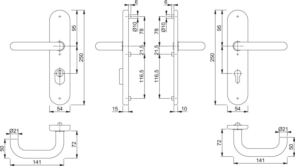 Sicherheits-Drückergarnitur Paris FS-138F/3332ZA/3310; Produkttyp: Sicherheits-Drückergarnitur; Produkttyp (Hersteller): Sicherheits-Drückergarnitur; Ausführung: Langschild; Form: oval; Zulassung: für Feuerschutz,für Rauchschutz,für Fluchttüren; Material: Aluminium; Form Türgriff (innen): U-Form; Ausführung Türgriff (innen): mit Stahlkern; Form Türgriff (außen): U-Form; Ausführung Türgriff (außen): mit Stahlkern; Länge Türgriff (innen): 141 mm; Länge Türgriff (außen): 141 mm; Höhe Türgriff (innen): 72 mm; Höhe Türgriff (außen): 72 mm; Durchmesser Türgriff (innen): 21 mm; Durchmesser Türgriff (außen): 21 mm; Material Unterkonstruktion (innen): Zamak/Stahl; Material Unterkonstruktion (außen): Stahl; Gütesiegel: RAL-GZ; Einsatzbereich: Objekttür; Türart: Vollblatt; Türwerkstoff: Holz,Stahl; Zylinderabdeckung: mit Zylinderabdeckung; DIN-Richtung: DIN Links-Rechts; Widerstandsklasse nach DIN 18257: ES 1; Vierkant: 9 mm; Entfernung: 92 mm; Lochung: Profilzylinder gelocht; Ausführung Vierkant: Vierkantvollstift; Farbe: silberfarben; Farbton: naturfarben; Oberfläche: eloxiert; Schildlänge außen: 250 mm; Schildlänge innen: 250 mm; Schildbreite außen: 54 mm; Schildbreite innen: 54 mm; Schildstärke innen: 10 mm; Schildstärke außen: 15 mm; Zylinderüberstand min.: 10 mm; Zylinderüberstand max.: 18 mm; Türstärke min.: 67 mm; Türstärke max.: 72 mm; Norm: DIN 18273,DIN 18257,DIN EN 179,DIN EN 1906; EN 1906 - Gebrauchskategorie: Klasse 4; EN 1906 - Korrosionsbeständigkeit: Klasse 4; Klassifizierungsschlüssel EN 1906: 47-D1142U