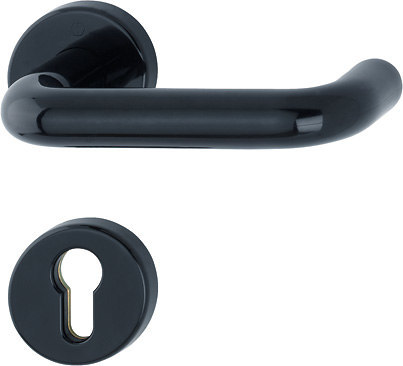 Drückergarnitur Paris FS-K138/15/15S; Produkttyp: Drückergarnitur; Produkttyp (Hersteller): Drückergarnitur; Ausführung: Rosette; Befestigungsart Drückerrosette (außen): verdeckt verschraubt; Befestigungsart Drückerrosette (innen): verdeckt verschraubt; Befestigungsart Schlüsselrosette (außen): verdeckt verschraubt; Befestigungsart Schlüsselrosette (innen): verdeckt verschraubt; Befestigungstechnik: mit Stütznocken; Montageart: aufliegend; Form Drückerrosette: rund; Form Schlüsselrosette (außen): rund; Form Schlüsselrosette (innen): rund; Vierkant: 9 mm; Material: Kunststoff; Form Türgriff (innen): U-Form; Ausführung Türgriff (innen): mit Stahlkern; Form Türgriff (außen): U-Form; Ausführung Türgriff (außen): mit Stahlkern; Durchmesser Türgriff (innen): 21 mm; Durchmesser Türgriff (außen): 21 mm; Durchmesser Schlüsselrosette: 52 mm; Länge Türgriff (innen): 135 mm; Länge Türgriff (außen): 135 mm; Höhe Türgriff (innen): 61 mm; Höhe Türgriff (außen): 61 mm; Durchmesser Drückerrosette (außen): 52 mm; Durchmesser Drückerrosette (innen): 52 mm; Höhe Drückerrosette (außen): 9 mm; Höhe Drückerrosette (innen): 9 mm; Höhe Schlüsselrosette (außen): 9 mm; Höhe Schlüsselrosette (innen): 9 mm; Lagerung: wartungsfreies Gleitlager,festdrehbar; Einsatzbereich: Objekttür; Türart: Vollblatt; Türwerkstoff: Holz,Stahl; Lochung: Profilzylinder gelocht; DIN-Richtung: DIN Links-Rechts; Farbe: schwarz; Farbton: tiefschwarz; Oberfläche: beschichtet; Ausführung Vierkant: Vierkantstift; Türstärke min.: 40 mm; Türstärke max.: 66 mm; Norm: DIN EN 179,DIN 18273,DIN EN 1906; Zulassung: für Fluchttüren,für Rauchschutz,für Feuerschutz