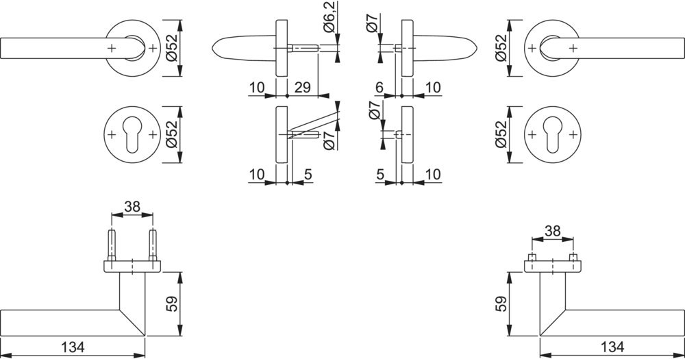 | Höhe Drückerrosette (außen): | 10.00 MMT |