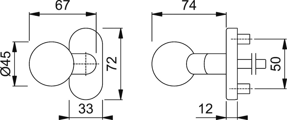 HOPPE®, Feuerhemmend-Knopf, Abdeckung: auf Rosette, Form Abdeckung: oval, DIN-Richtung: DIN Links-Rechts, Modellnummer: FS-E50G/55, Material: Edelstahl, Farbton: edelstahl matt, Eigenschaft: Knopf fest auf Rosette, Befestigungsart: verdeckt verschraubt, Befestigungstechnik: mit Stütznocken, Material Unterkonstruktion: Zamak, Stärke Abdeckung: 12 mm, Befestigungssystem: Stiftverbindung, Lagerung: Gleitlager, wartungsfrei, feststehend, Türart: Rahmentüren, Türwerkstoff: Aluminium, Kunststoff, Länge: 72 mm, Breite: 33 mm, Knopfform: Kugelform, Knopfdurchmesser: 45 mm, Knopfbreite: 67 mm, Knopfhöhe: 75 mm, Knopfbefestigung: Profilvollstift, Norm: DIN 18273, Zulassung: für Feuerschutz, für Rauchschutz