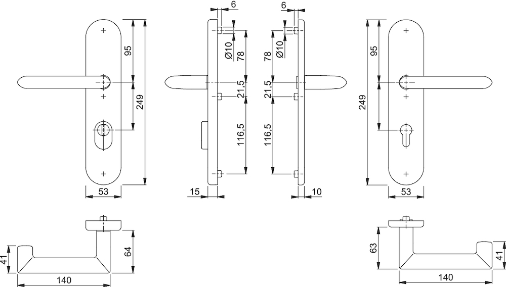 HOPPE®, Feuerhemmend-Schutz-Drückergarnitur, Abdeckung: Langschild, Modell: Karlstad, Modellnummer: FS-E1141F/3332ZA/3310, Lochung: Profilzylinder gelocht, Entfernung: 72mm, Vierkant: 9mm, Material: Edelstahl, Farbton: edelstahl matt, DIN-Richtung: DIN Links-Rechts, Lagerung: Gleitlager, wartungsfrei, festdrehbar, Ausführung: mit Zylinderabdeckung, Befestigungsart: verdeckt verschraubt, Befestigungstechnik: mit Stütznocken, Material Unterkonstruktion außen: Stahl, Material Unterkonstruktion innen: Zamak/Stahl, Befestigungssystem: Stiftverbindung, Breite: 53mm, Länge: 249mm, Schildstärke außen: 15mm, Schildstärke innen: 10mm, Für Zylinderüberstand min.: 10 mm, Für Zylinderüberstand max.: 18 mm, Anschlagrichtung: Drücker rechts/links verwendbar, Drückerbefestigung: Profilvollstift,Drückerform : Gehrung, U-Form, Drückerlänge: 140 mm, Drückerhöhe: 63 mm, Form: oval, Türstärke min.: 42mm, Türstärke max.: 47mm, Türart: Außentüren,Türwerkstoff : Holz, Aluminium, Stahl, Prüfung: RAL-GZ 607/6, Widerstandsklasse: ES 1 (SK2), Norm: DIN 18273, DIN 18257, DIN EN 1906, Zulassung: für Feuerschutz, für Rauchschutz
