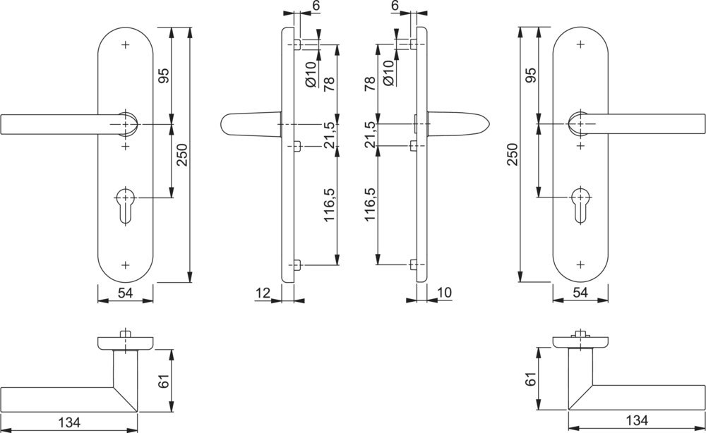 Sicherheits-Drückergarnitur Stockholm FS-1140F/3331/3310; Produkttyp: Sicherheits-Drückergarnitur; Produkttyp (Hersteller): Sicherheits-Drückergarnitur; Ausführung: Langschild; Form: oval; Zulassung: für Feuerschutz,für Rauchschutz; Material: Aluminium; Form Türgriff (innen): Gehrung; Ausführung Türgriff (innen): mit Stahlkern; Form Türgriff (außen): Gehrung; Ausführung Türgriff (außen): mit Stahlkern; Länge Türgriff (innen): 134 mm; Länge Türgriff (außen): 134 mm; Höhe Türgriff (innen): 61 mm; Höhe Türgriff (außen): 61 mm; Material Unterkonstruktion (innen): Zamak/Stahl; Material Unterkonstruktion (außen): Stahl; Gütesiegel: RAL-GZ; Einsatzbereich: Objekttür; Türart: Vollblatt; Türwerkstoff: Stahl,Holz; Zylinderabdeckung: ohne Zylinderabdeckung; DIN-Richtung: DIN Links-Rechts; Widerstandsklasse nach DIN 18257: ES 1; Vierkant: 9 mm; Entfernung: 72 mm; Lochung: Profilzylinder gelocht; Ausführung Vierkant: Vierkantvollstift; Farbe: silberfarben; Farbton: naturfarben; Oberfläche: eloxiert; Schildlänge außen: 250 mm; Schildlänge innen: 250 mm; Schildbreite außen: 54 mm; Schildbreite innen: 54 mm; Schildstärke innen: 10 mm; Schildstärke außen: 12 mm; Türstärke min.: 42 mm; Türstärke max.: 47 mm; Norm: DIN 18273,DIN 18257,DIN EN 1906; EN 1906 - Gebrauchskategorie: Klasse 4; EN 1906 - Korrosionsbeständigkeit: Klasse 4; Klassifizierungsschlüssel EN 1906: 47-D1142U