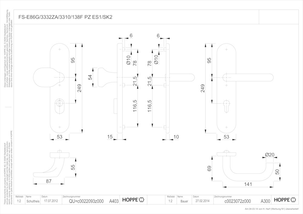 Produktinformationen "HOPPE Sicherheits-Wechselgarnitur Paris FS-E86G/3332ZA/3310/138F,LS ov.,15mm,ES1,ZA/PZ 92/9,F69,TS 67-72"
