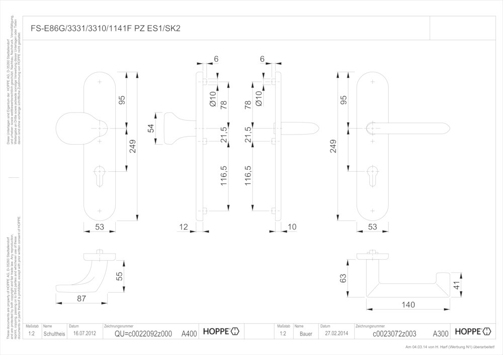 Produktinformationen "HOPPE Sicherheits-Wechselgarnitur Stockholm FS-E86G/3331/3310/1141F,LS ov.,12mm,ES1/PZ 92/9,F69,TS 67-72"