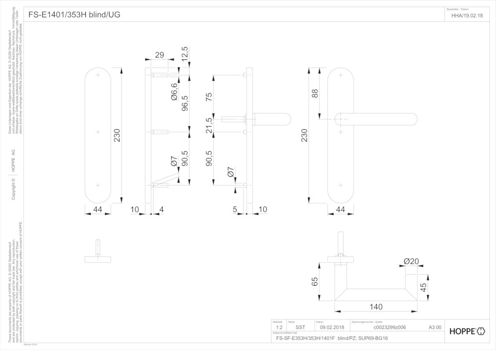 Produktinformationen "HOPPE Standflügelgarnitur Rotterdam FS-E1401/353H, LS,BL/UG/9,F69,TS 40-65"
