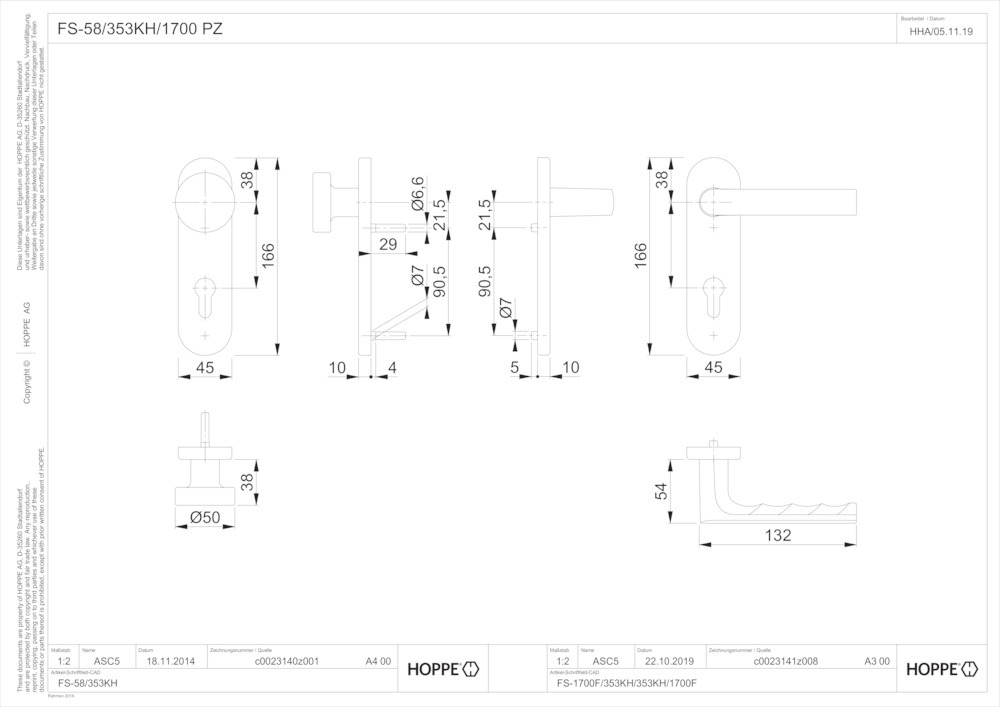 Produktinformationen "HOPPE FH-Wechselgarnitur mit Kurzschild Hamburg FS-58/353KH/1700, Aluminium"