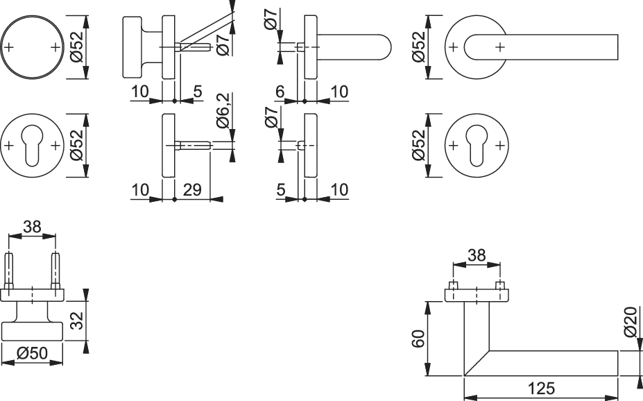 | Drückerbefestigung: | Wechselstift mit Rolle |