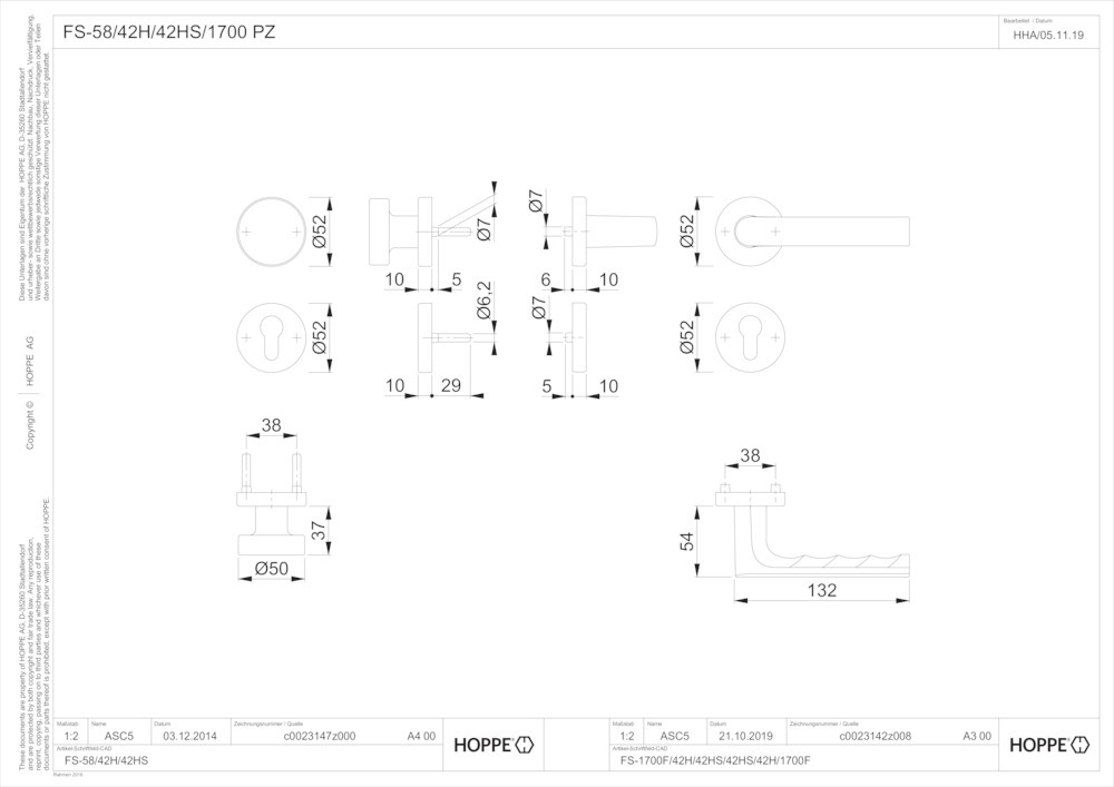 | Drückerbefestigung: | Wechselstift mit Rolle |