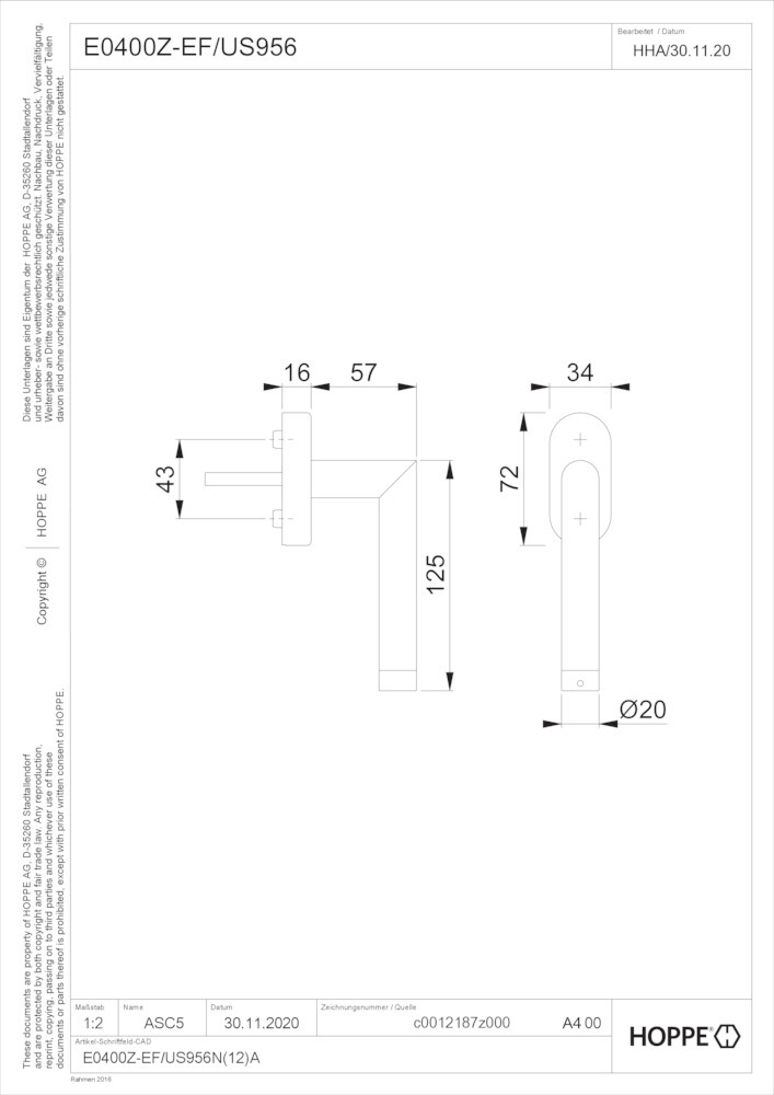 Produktinformationen "HOPPE Funk-Fenstergriff Amsterdam E0400Z-EF/US956, oval,7/32-42,F69"