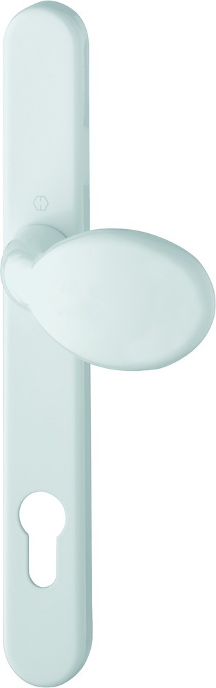 Halbgarnitur 76G/3347N; Produkttyp: Halbgarnitur; Produkttyp (Hersteller): Halbgarnitur; Ausführung: Langschild; Befestigungsart: verdeckt verschraubt; Befestigungstechnik: mit Stütznocken; Form: oval; Vierkant: 8 mm; Material: Aluminium; Material Unterkonstruktion: Zamak; Form Türgriff (außen): gekröpft; Ausführung Türgriff (außen): fest; Gewinde Knopf/Griffplatte: M12; Breite Türgriff (außen): 90 mm; Höhe Türgriff (außen): 50 mm; Schildbreite außen: 30 mm; Schildlänge außen: 245 mm; Schildstärke außen: 10 mm; Lagerung: fest; Einsatzbereich: Haustür; Türart: Rohrrahmen; Türwerkstoff: Kunststoff,Aluminium; Anwendung: außen; Lochung: Profilzylinder gelocht; Entfernung: 92 mm; DIN-Richtung: DIN Links-Rechts; Farbe: weiß; Farbton: verkehrsweiß; Oberfläche: beschichtet; Ausführung Vierkant: Rollenwechselstift; Türstärke min.: 72 mm; Türstärke max.: 82 mm