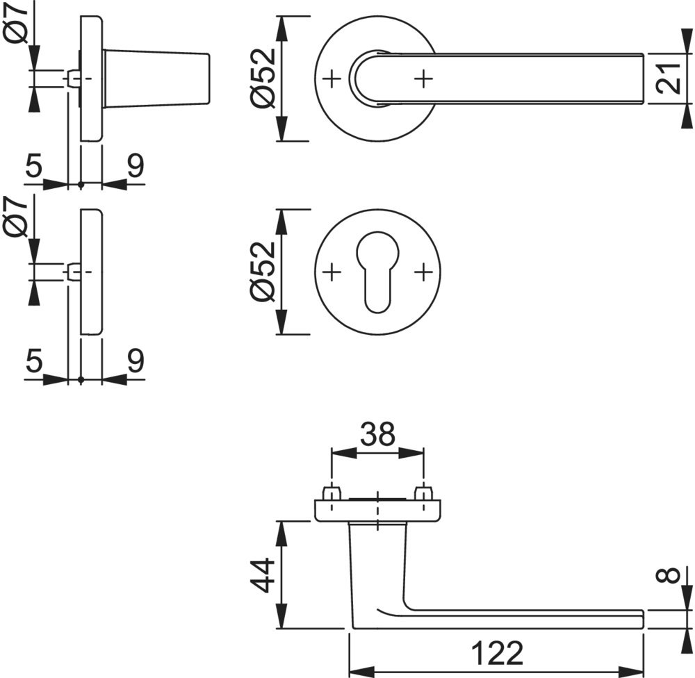 | Höhe Drückerrosette (innen): | 9.00 MMT |