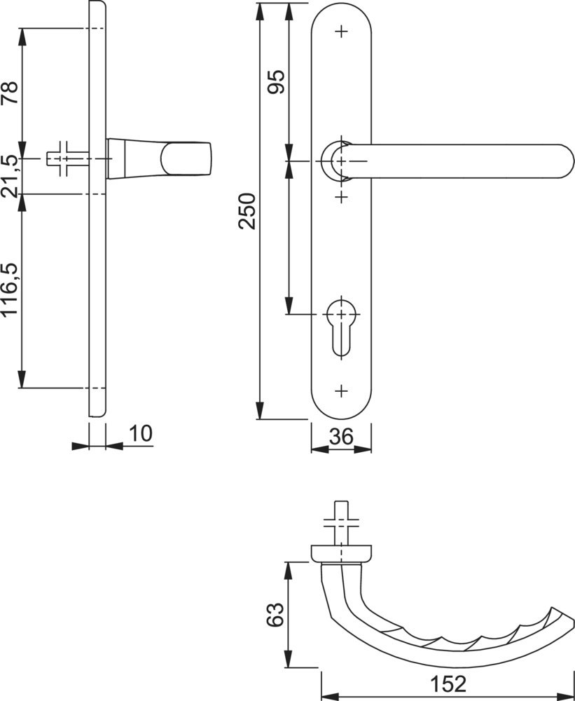 Halbgarnitur Luxembourg 1500/3357SN; Produkttyp: Halbgarnitur; Produkttyp (Hersteller): Halbgarnitur; Ausführung: Langschild; Befestigungsart: verdeckt verschraubt; Befestigungstechnik: ohne Stütznocken; Form: oval; Vierkant: 8 mm; Material: Aluminium; Material Unterkonstruktion: Zamak; Form Türgriff (innen): gebogen; Länge Türgriff (innen): 152 mm; Höhe Türgriff (innen): 63 mm; Schildbreite außen: 36 mm; Schildbreite innen: 36 mm; Schildlänge außen: 250 mm; Schildlänge innen: 250 mm; Schildstärke außen: 10 mm; Schildstärke innen: 10 mm; Lagerung: mit Rückholfeder,wartungsfreies Gleitlager,festdrehbar; Einsatzbereich: Haustür; Türart: Rohrrahmen; Türwerkstoff: Aluminium,Kunststoff; Anwendung: innen; Lochung: Profilzylinder gelocht; Entfernung: 92 mm; DIN-Richtung: DIN Links-Rechts; Farbe: braun; Farbton: dunkelbraun seidenglänzend beschichtet; Ausführung Vierkant: Vierkantstift