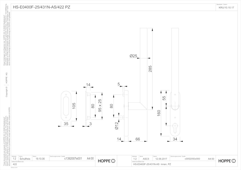 Produktinformationen "HOPPE Handhebelgarnitur Amsterdam HS-E0400F-25/431N-AS/422, PZ,TS 75-80,F69/F31-1"
