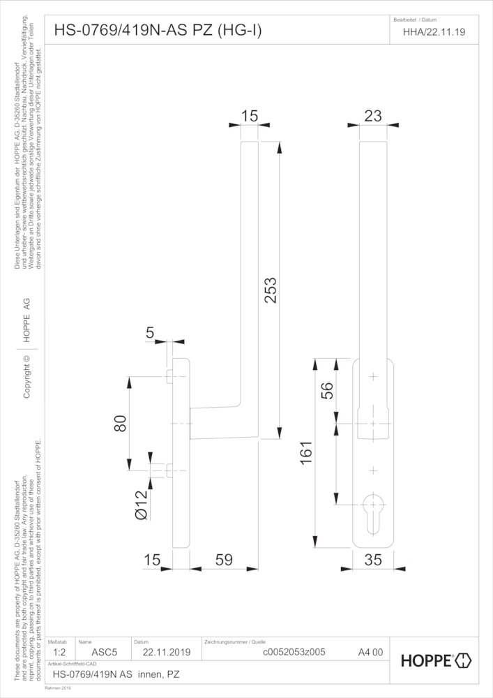 Produktinformationen "HOPPE Handhebelgarnitur Austin HS-0769/419N-AS, innen, PZ"