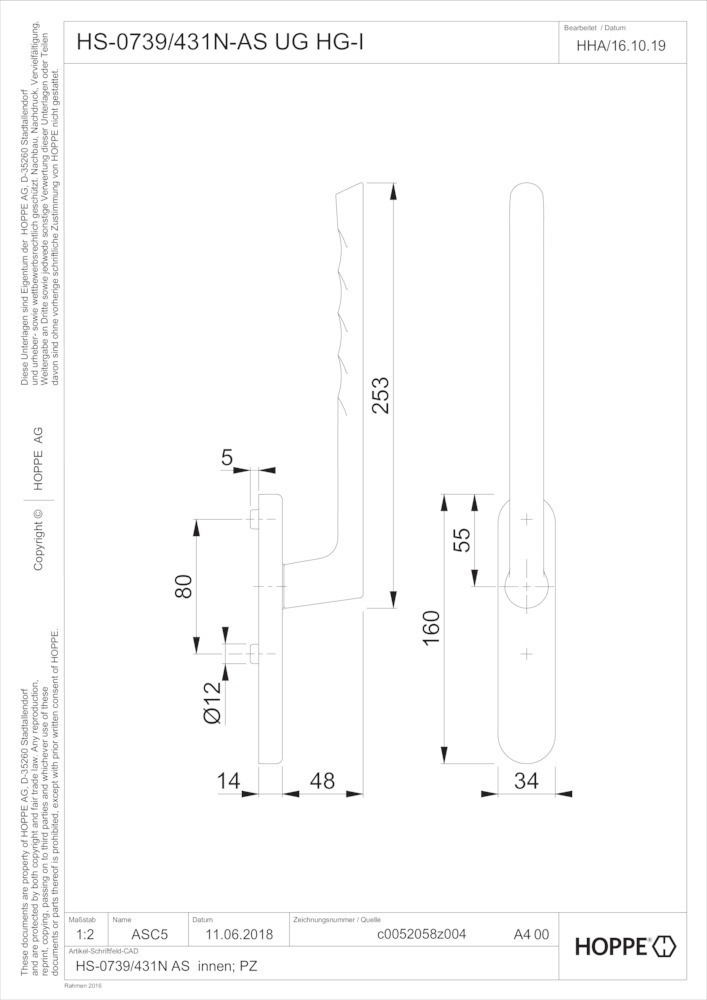 Produktinformationen "HOPPE Handhebelgarnitur Brest HS-0739/431N-AS, innen, UG"