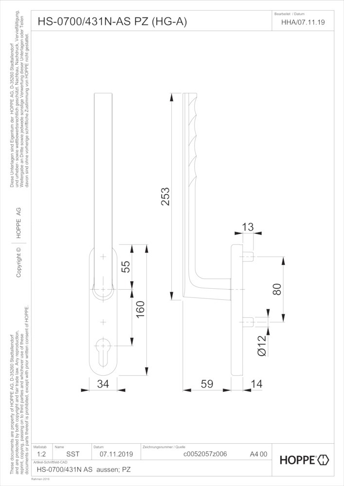 Produktinformationen "HOPPE Handhebelgarnitur Hamburg HS-0700/431N-AS, außen, PZ"