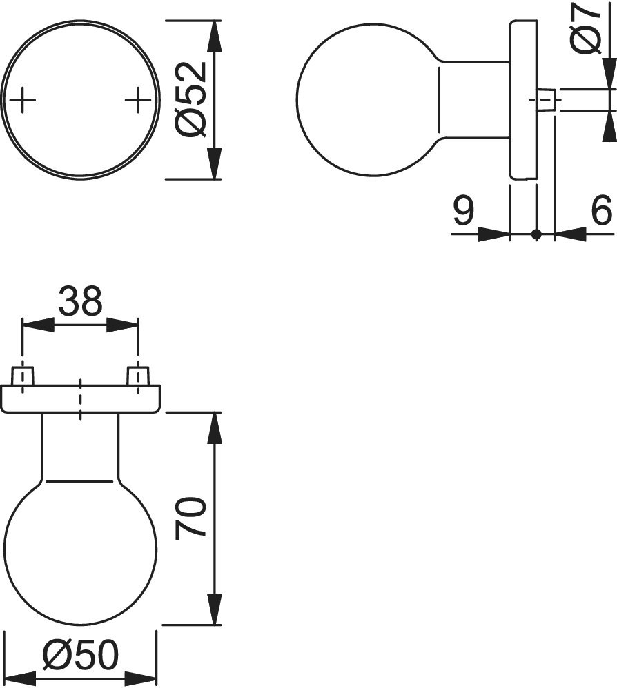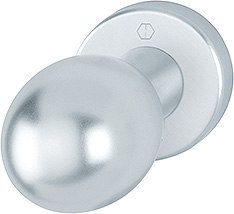 Halbgarnitur 50/42KV; Produkttyp: Halbgarnitur; Produkttyp (Hersteller): Knopfrosette; Ausführung: ohne Schlüsselrosette; Befestigungsart Drückerrosette (außen): verdeckt verschraubt; Befestigungstechnik: mit Stütznocken; Montageart: aufliegend; Form Drückerrosette: rund; Vierkant: 8 mm; Material: Aluminium; Material Unterkonstruktion (Griffrosette): Kunststoff; Form Türgriff (außen): Kugelknopf; Ausführung Türgriff (außen): fest; Gewinde Knopf/Griffplatte: M12; Durchmesser Türgriff (außen): 50 mm; Höhe Türgriff (außen): 70 mm; Durchmesser Drückerrosette (außen): 52 mm; Höhe Drückerrosette (außen): 9 mm; Einsatzbereich: Wohnungseingangstür,Haustür; Türart: Vollblatt; Türwerkstoff: Stahl,Holz; Anwendung: außen; DIN-Richtung: DIN Links-Rechts; Farbe: silber; Farbton: naturfarben; Oberfläche: eloxiert; Ausführung Vierkant: Rollenwechselstift; Türstärke min.: 37 mm; Türstärke max.: 42 mm