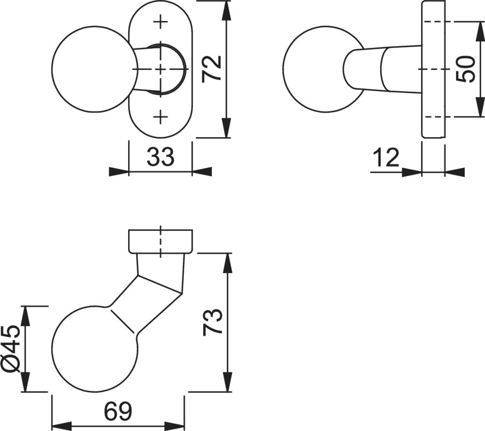 | Durchmesser Türgriff (außen): | 45.00 MMT |