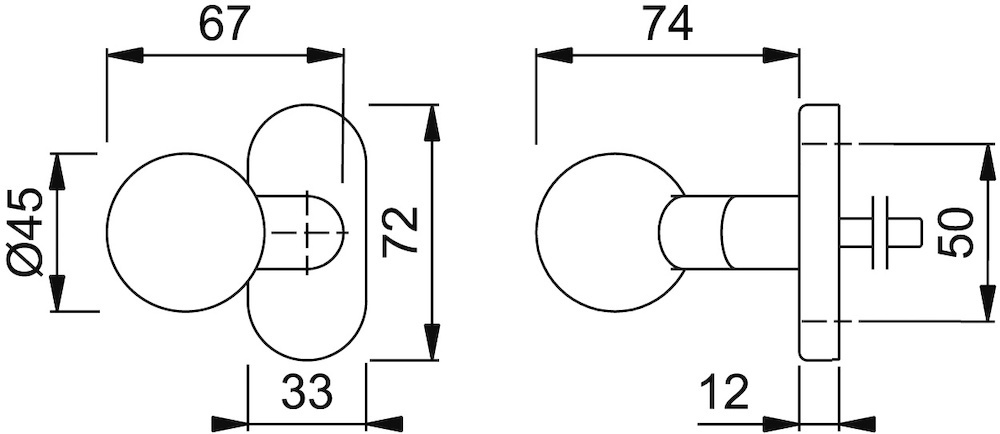 HOPPE®, Profiltür-Knopf, Abdeckung: auf Rosette, Form Abdeckung: oval, Vierkant: 8 mm, DIN-Richtung: DIN Links-Rechts, Modellnummer: E50G/55, Material: Edelstahl, Farbton: edelstahl matt, Eigenschaft: Knopf fest auf Rosette, Befestigungsart: verdeckt verschraubt, Befestigungstechnik: ohne Stütznocken, Material Unterkonstruktion: Zamak, Stärke Abdeckung: 12 mm, Befestigungssystem: Stiftverbindung, Lagerung: Gleitlager, wartungsfrei, festdrehbar, Rückholfeder, Türart: Rahmentüren, Türwerkstoff: Aluminium, Kunststoff, Länge: 72 mm, Breite: 33 mm, Knopfform: Kugelform, Knopfdurchmesser: 45 mm, Knopfbreite: 67 mm, Knopfhöhe: 74 mm, Knopfbefestigung: Profilvollstift