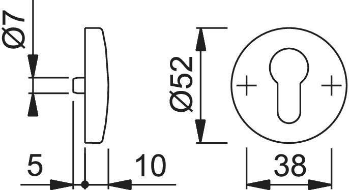 Schlüsselrosette E19S; Produkttyp: Schlüsselrosette; Produkttyp (Hersteller): Schlüsselrosette; Anwendung: innen; Form: rund; Befestigungsart: verdeckt verschraubt; Material: Edelstahl; Durchmesser: 52 mm; Material Unterkonstruktion: Stahl; Einsatzbereich: Tür; Türart: Vollblatt; Lochung: Profilzylinder gelocht; Farbe: grau; Farbton: edelstahl matt; Stütznocken: mit Stütznocken; Höhe: 10 mm
