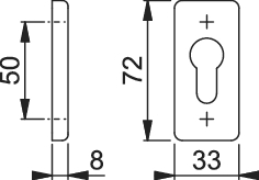 HOPPE®, Profiltür-Schlüsselrosette, Lochung: Profilzylinder gelocht, Befestigungsart: verdeckt verschraubt, Modellnummer: E44S, Material: Edelstahl, Farbton: edelstahl matt, Form: eckig, DIN-Richtung: DIN Links-Rechts, Befestigungstechnik: ohne Stütznocken, Länge: 72 mm, Breite: 33 mm, Stärke Abdeckung: 8 mm, Schraublochabstand: 50mm, Türart: Außentüren, Rahmentüren, Türwerkstoff: Aluminium, Kunststoff,Material Unterkonstruktion : Zamak