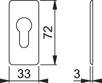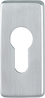 HOPPE®, Profiltür-Schlüsselrosette, Lochung: Profilzylinder gelocht, Befestigungsart: selbstklebend, Modellnummer: E44S-SK, Material: Edelstahl, Farbton: edelstahl matt, Form: eckig, DIN-Richtung: DIN Links-Rechts, Befestigungstechnik: ohne Stütznocken, Länge: 72 mm, Breite: 33 mm, Stärke Abdeckung: 3 mm, Türart: Außentüren, Rahmentüren, Türwerkstoff: Aluminium, Kunststoff