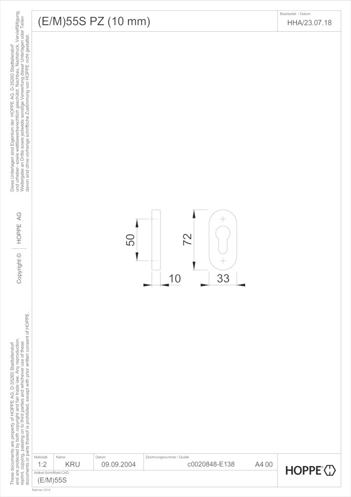 Produktinformationen "HOPPE Schlüsselrosette E55S, Edelstahl"