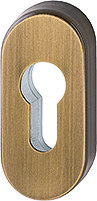 Schlüsselrosette M55S-SR; Produkttyp: Schlüsselrosette; Produkttyp (Hersteller): Schiebe-Schlüsselrosette; Anwendung: außen/innen; Form: oval; Befestigungsart: verdeckt verschraubt; Material: Messing; Länge: 72 mm; Breite: 33 mm; Befestigungsabstand: 50 mm; Material Unterkonstruktion: Zamak; Einsatzbereich: Tür; Türart: Rohrrahmen; Lochung: Profilzylinder gelocht; Farbe: braun; Farbton: messing brüniert; Stütznocken: ohne Stütznocken; Höhe: 10 mm