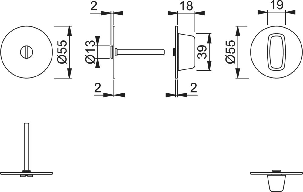 Produktinformationen "HOPPE Schlüsselrosettenpaar E849S-SK, rund o. No., WC/S, 2mm, TS 35-45, F69, DIY"