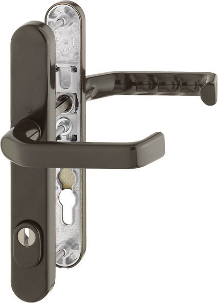 Sicherheits-Drückergarnitur Liverpool 1313G/3359ZA/3357N; Produkttyp: Sicherheits-Drückergarnitur; Produkttyp (Hersteller): Sicherheits-Drückergarnitur; Ausführung: Langschild; Form: oval; Material: Aluminium; Form Türgriff (innen): U-Form,gekröpft; Form Türgriff (außen): U-Form,gekröpft; Länge Türgriff (innen): 146 mm; Länge Türgriff (außen): 146 mm; Höhe Türgriff (innen): 60 mm; Höhe Türgriff (außen): 60 mm; Material Unterkonstruktion (innen): Zamak; Material Unterkonstruktion (außen): Stahl; Gütesiegel: RAL-GZ; Einsatzbereich: Haustür; Türart: Rohrrahmen; Türwerkstoff: Kunststoff,Aluminium; Zylinderabdeckung: mit Zylinderabdeckung; DIN-Richtung: DIN Links-Rechts; Widerstandsklasse nach DIN 18257: ES 1; Vierkant: 8 mm; Entfernung: 92 mm; Lochung: Profilzylinder gelocht; Ausführung Vierkant: Vierkantvollstift; Farbe: braun; Farbton: dunkelbraun seidenglänzend beschichtet; Schildlänge außen: 250 mm; Schildlänge innen: 250 mm; Schildbreite außen: 36 mm; Schildbreite innen: 36 mm; Schildstärke innen: 10 mm; Schildstärke außen: 15 mm; Zylinderüberstand min.: 10 mm; Zylinderüberstand max.: 18 mm; Türstärke min.: 67 mm; Türstärke max.: 72 mm; Norm: DIN 18257