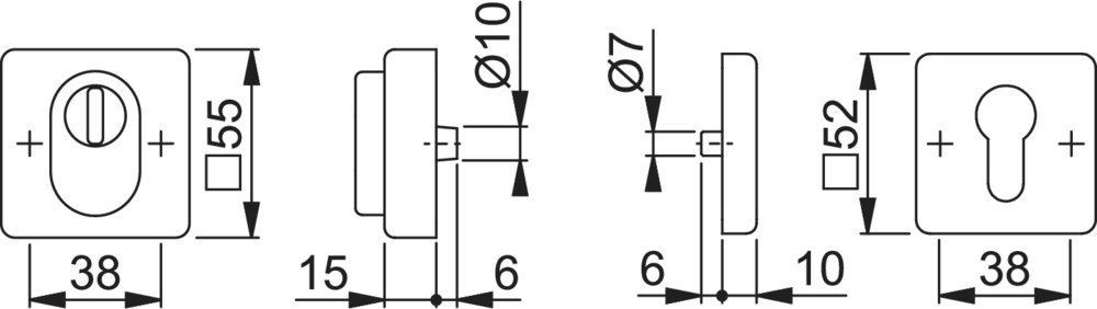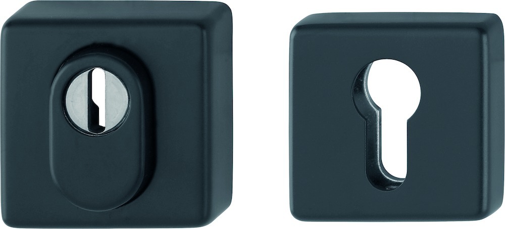 Schutzrosette E52ZNSB-ZA/52S; Produkttyp: Schutzrosette; Produkttyp (Hersteller): Schutzrosette; Form: eckig; Material: Edelstahl; Montageart: aufliegend; Befestigungsart: verdeckt verschraubt; Länge Rosette (außen): 55 mm; Breite Rosette (außen): 55 mm; Länge Rosette (innen): 52 mm; Breite Rosette (innen): 52 mm; Befestigungsabstand: 38 mm; Material Unterkonstruktion (innen): Stahl; Material Unterkonstruktion (außen): Stahl; Einsatzbereich: Haustür; Türart: Vollblatt; Türwerkstoff: Stahl,Holz; Zylinderabdeckung: ohne Zylinderabdeckung; Lochung: Profilzylinder gelocht; Farbe: schwarz; Farbton: schwarz matt; Höhe Rosette (außen): 15 mm; Höhe Rosette (innen): 10 mm