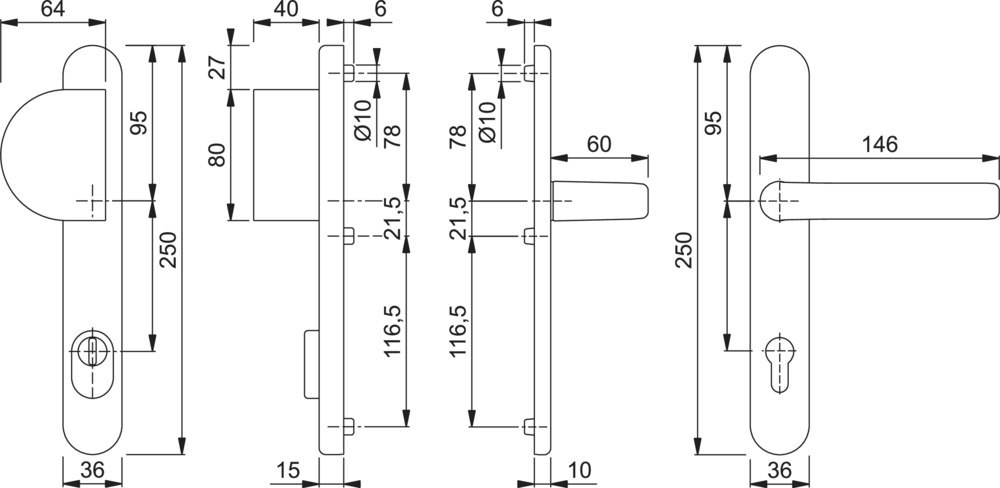 | Form Türgriff (außen): | Griffplatte, halbrund |
