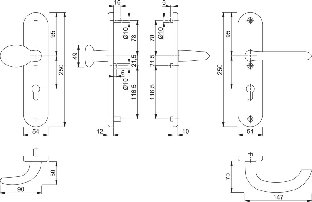 Sicherheits-Wechselgarnitur Marseille 76G/3331/3410/1138; Produkttyp: Sicherheits-Wechselgarnitur; Produkttyp (Hersteller): Sicherheits-Wechselgarnitur; Ausführung: Langschild; Form: oval; Material: Aluminium; Form Türgriff (innen): gebogen; Form Türgriff (außen): gekröpft; Ausführung Türgriff (außen): fest; Länge Türgriff (innen): 147 mm; Länge Türgriff (außen): 49 mm; Breite Türgriff (außen): 90 mm; Höhe Türgriff (innen): 69 mm; Höhe Türgriff (außen): 50 mm; Material Unterkonstruktion (innen): Zamak; Material Unterkonstruktion (außen): Stahl; Einsatzbereich: Haustür; Türart: Vollblatt; Türwerkstoff: Holz,Stahl; Zylinderabdeckung: ohne Zylinderabdeckung; DIN-Richtung: DIN Links-Rechts; Widerstandsklasse nach DIN 18257: ES 1; Vierkant: 10 mm; Entfernung: 92 mm; Lochung: Profilzylinder gelocht; Ausführung Vierkant: Rollenwechselstift; Farbe: silberfarben; Farbton: naturfarben; Oberfläche: eloxiert; Schildlänge außen: 250 mm; Schildlänge innen: 250 mm; Schildbreite außen: 54 mm; Schildbreite innen: 54 mm; Schildstärke innen: 10 mm; Schildstärke außen: 12 mm; Türstärke min.: 67 mm; Türstärke max.: 71 mm; Norm: DIN EN 1906,DIN 18257; EN 1906 - Gebrauchskategorie: Klasse 3; EN 1906 - Korrosionsbeständigkeit: Klasse 4; Klassifizierungsschlüssel EN 1906: 37-0142A