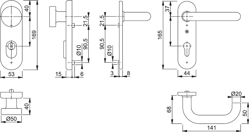 | Drückerbefestigung: | Wechselstift mit Rolle |