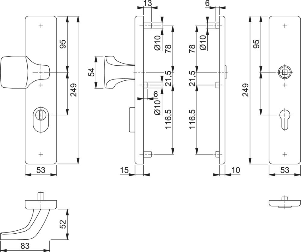 Produktinformationen "HOPPE Sicherheits-Wechselgarnitur E61G/2222ZA/2210,LS eck.,15mm,ES1,ZA/PZ72/8,F69,TS37-47"