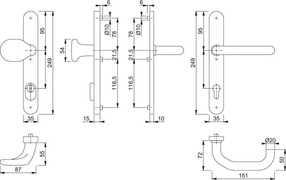 Sicherheits-Wechselgarnitur Paris E86G/3359ZA/3357N/138GF; Produkttyp: Sicherheits-Wechselgarnitur; Produkttyp (Hersteller): Sicherheits-Wechselgarnitur; Ausführung: Langschild; Form: oval; Material: Edelstahl; Form Türgriff (innen): U-Form,gekröpft; Form Türgriff (außen): gekröpft; Ausführung Türgriff (außen): fest; Länge Türgriff (innen): 151 mm; Länge Türgriff (außen): 53 mm; Breite Türgriff (außen): 87 mm; Höhe Türgriff (innen): 72 mm; Höhe Türgriff (außen): 55 mm; Durchmesser Türgriff (innen): 20 mm; Material Unterkonstruktion (innen): Zamak; Material Unterkonstruktion (außen): Stahl; Einsatzbereich: Haustür; Türart: Rohrrahmen; Türwerkstoff: Kunststoff,Aluminium; Zylinderabdeckung: mit Zylinderabdeckung; DIN-Richtung: DIN Links-Rechts; Widerstandsklasse nach DIN 18257: ES 1; Vierkant: 8 mm; Entfernung: 92 mm; Lochung: Profilzylinder gelocht; Ausführung Vierkant: Rollenwechselstift; Farbe: grau; Farbton: edelstahl matt; Schildlänge außen: 249 mm; Schildlänge innen: 249 mm; Schildbreite außen: 35 mm; Schildbreite innen: 35 mm; Schildstärke innen: 10 mm; Schildstärke außen: 15 mm; Zylinderüberstand min.: 10 mm; Zylinderüberstand max.: 18 mm; Türstärke min.: 67 mm; Türstärke max.: 72 mm; Norm: DIN 18257