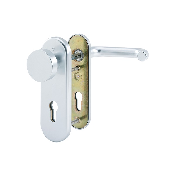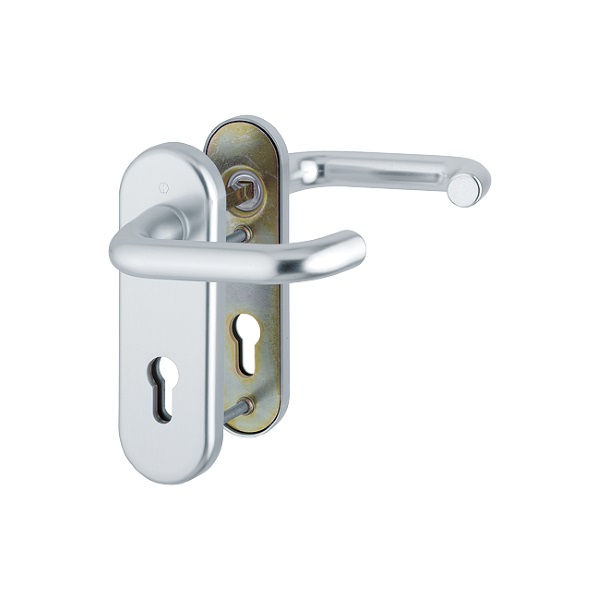Dieser Hoppe Paris Türgriff ist als Schutzgarnitur konzipiert. Die Schutzgarnitur ist in Edelstahl und Aluminium erhältlich. Es gibt sie in den Farben F1-Natur, F2-Neusilber und F69-Edelstahl matt. In der Version mit Zylinderabdeckung eignet sich die Hoppe Paris Schutzgarnitur besonders zum Einsatz an Wohnungseingangstüren und entspricht der Schutzklasse 2 (nach DIN EN 1906). Der Zylinderziehschutz ist für Zylinderüberstände von 10-18 mm ausgelegt. Die Befestigung erfolgt mit vedeckten durchgehenden M6-Gewindeschrauben. Zusätzlich gibt es noch eine sichtbare M4-Gewindeschraube an der Innenseite.