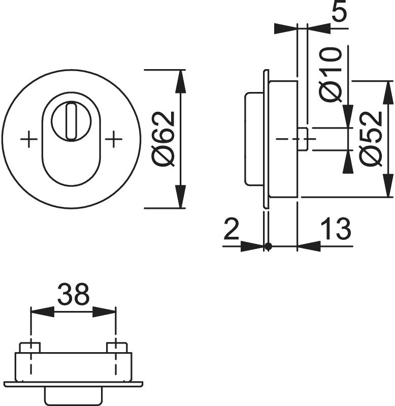 Produktinformationen "HOPPE Schutzrosette E29ZNSB-ZA,rund/flach,2mm,ZA/PZ,F69,TS65-75"