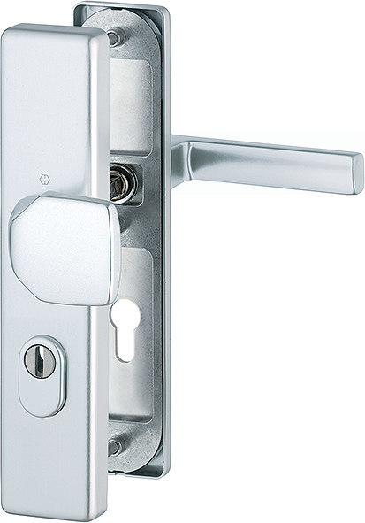 Sicherheits-Wechselgarnitur Austin FS-61G/2222ZA/2210/1769; Produkttyp: Sicherheits-Wechselgarnitur; Produkttyp (Hersteller): Sicherheits-Wechselgarnitur; Ausführung: Langschild; Form: eckig; Zulassung: für Rauchschutz,für Feuerschutz; Material: Aluminium; Form Türgriff (innen): L-Form; Ausführung Türgriff (innen): mit Stahlkern; Form Türgriff (außen): gekröpft; Ausführung Türgriff (außen): fest; Gewinde Knopf/Griffplatte: M12; Länge Türgriff (innen): 133 mm; Länge Türgriff (außen): 54 mm; Breite Türgriff (innen): 22 mm; Breite Türgriff (außen): 83 mm; Höhe Türgriff (innen): 58 mm; Höhe Türgriff (außen): 52 mm; Material Unterkonstruktion (innen): Zamak/Stahl; Material Unterkonstruktion (außen): Stahl; Gütesiegel: RAL-GZ; Einsatzbereich: Objekttür; Türart: Vollblatt; Türwerkstoff: Holz,Stahl; Zylinderabdeckung: mit Zylinderabdeckung; DIN-Richtung: DIN Links-Rechts; Widerstandsklasse nach DIN 18257: ES 1; Vierkant: 9 mm; Entfernung: 72 mm; Lochung: Profilzylinder gelocht; Ausführung Vierkant: Rollenwechselstift; Farbe: silberfarben; Farbton: naturfarben; Oberfläche: eloxiert; Schildlänge außen: 250 mm; Schildlänge innen: 250 mm; Schildbreite außen: 54 mm; Schildbreite innen: 54 mm; Schildstärke innen: 10 mm; Schildstärke außen: 15 mm; Zylinderüberstand min.: 10 mm; Zylinderüberstand max.: 18 mm; Türstärke min.: 42 mm; Türstärke max.: 47 mm; Norm: DIN EN 1906,DIN 18257,DIN 18273; EN 1906 - Gebrauchskategorie: Klasse 4; EN 1906 - Korrosionsbeständigkeit: Klasse 4; Klassifizierungsschlüssel EN 1906: 47-D1142U